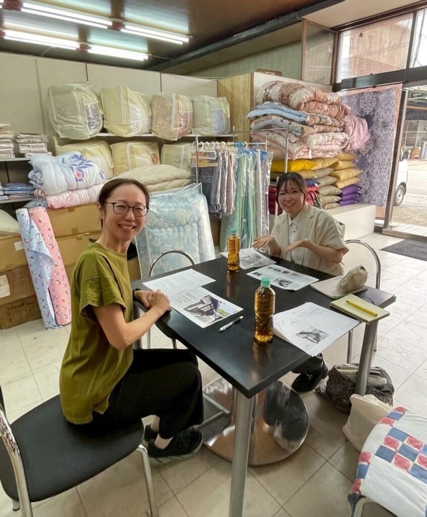 今回は豊島邸で使用する座布団の製作にご協力をいただいております。